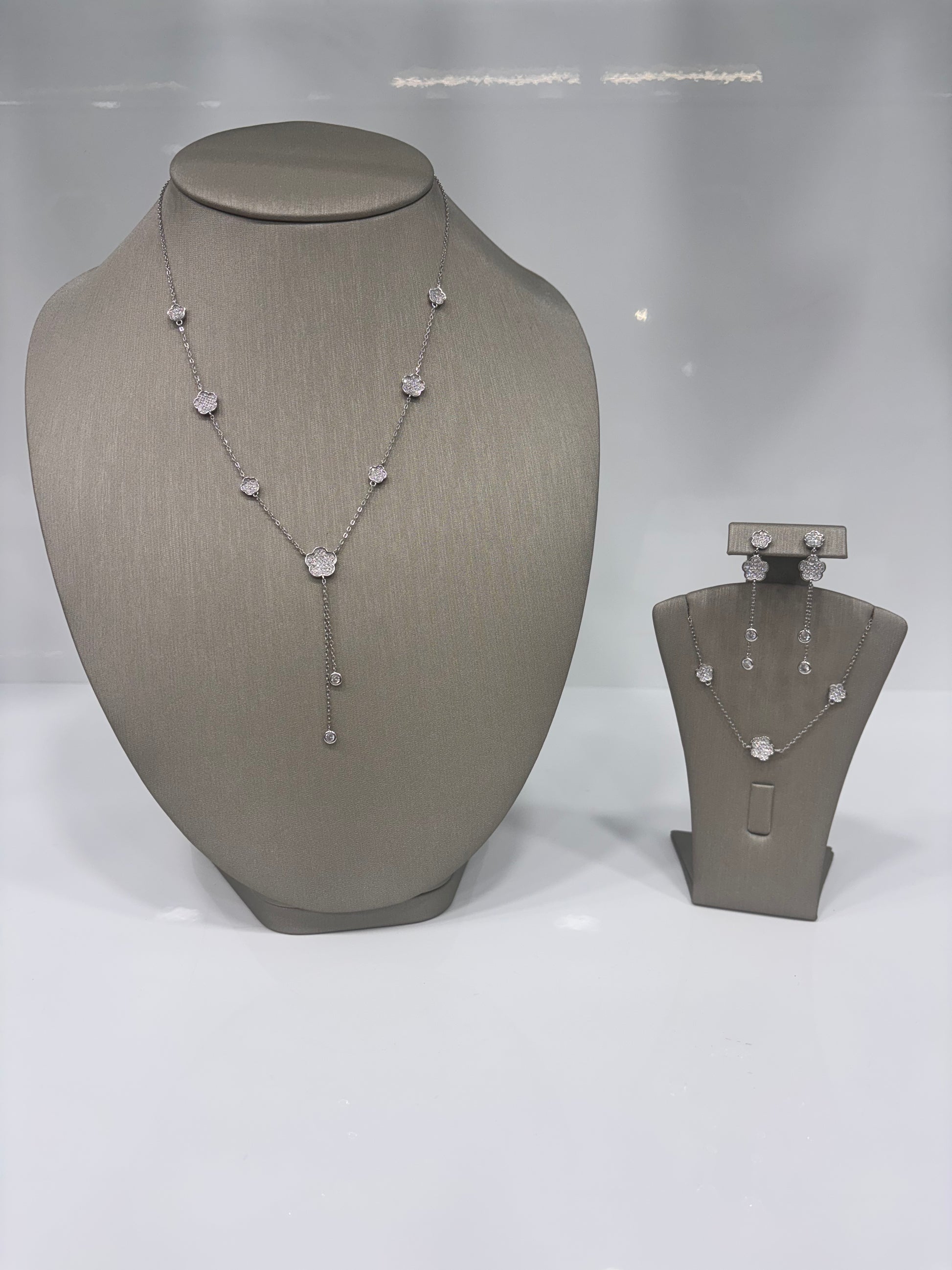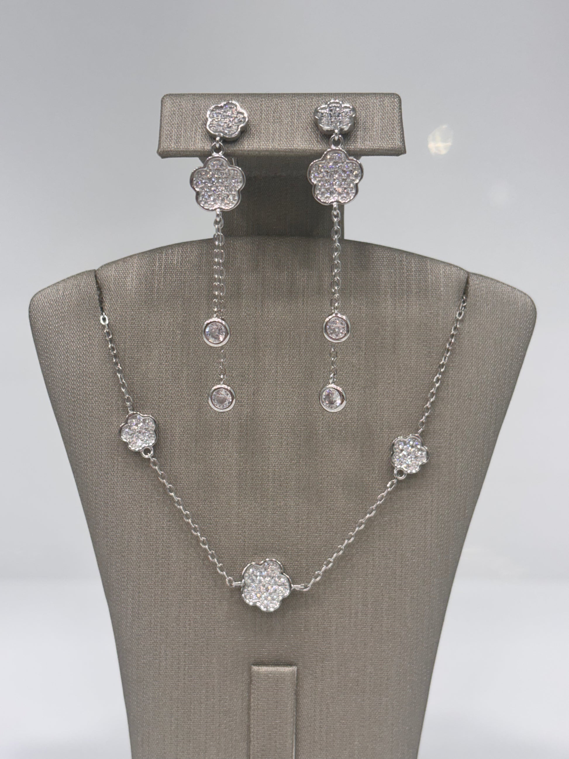 Set de Cadena, Pulsa, y Aretes Colgantes de Flor